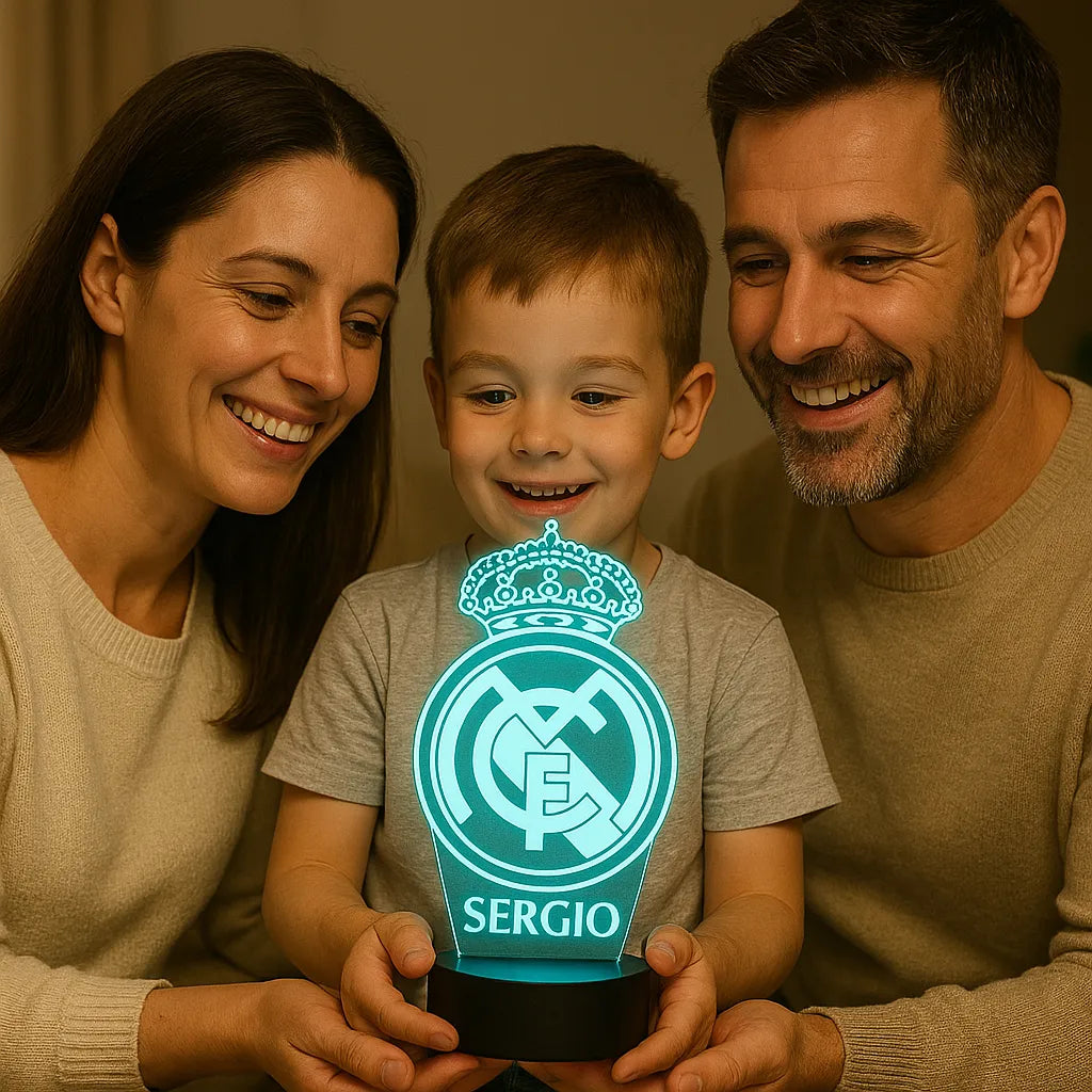Lleva su pasión al siguiente nivel: escudo del Real Madrid, su nombre y un mensaje especial. Ideal para acompañarlo en sus noches de estudio, juego o descanso.